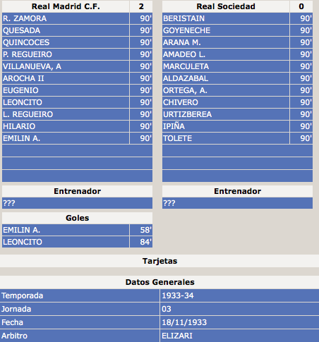 Ficha Real Madrid-Real Sociedad 1933-1934