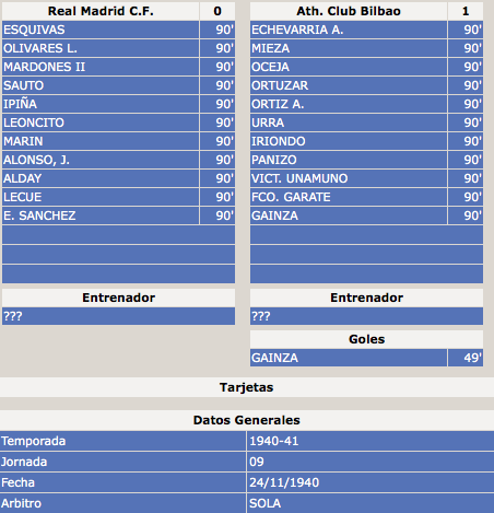 Ficha Real Madrid-Ath. Bilbao 1940-1941