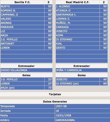 Ficha Sevilla-Real Madrid 1957-1958